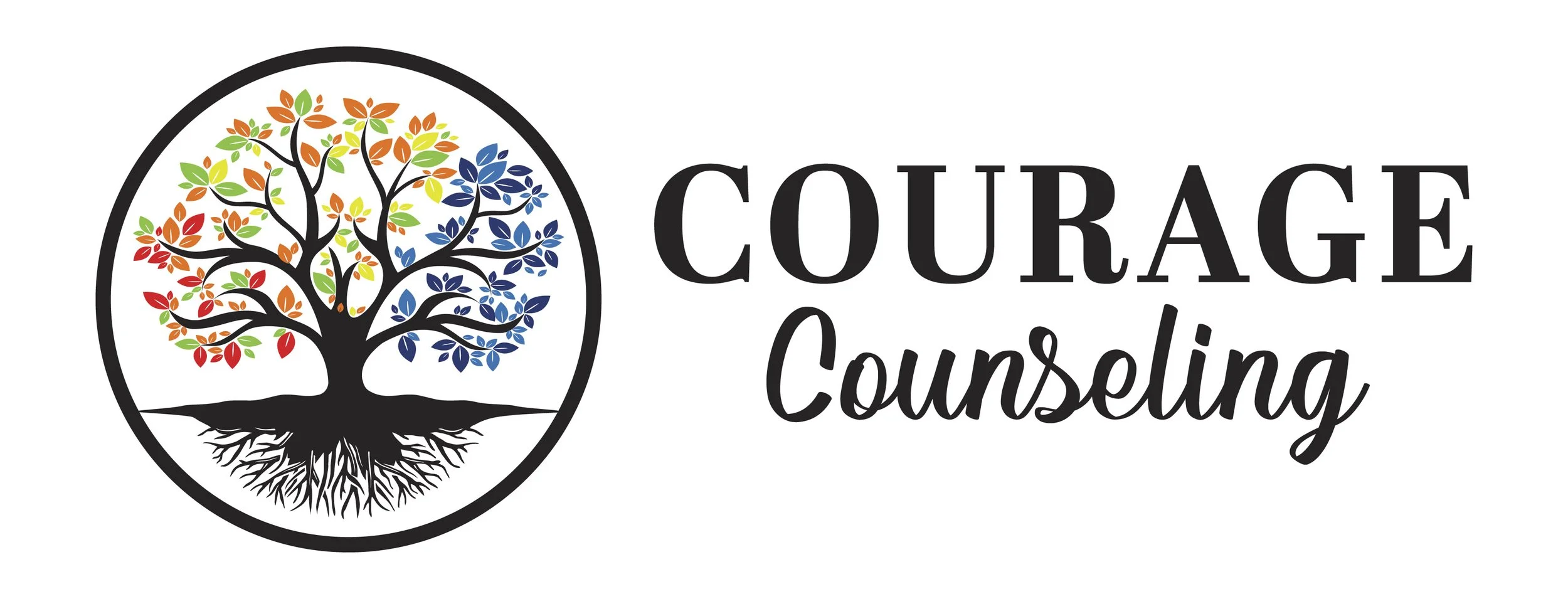 Logo for Courage Counseling with colorful tree design and text